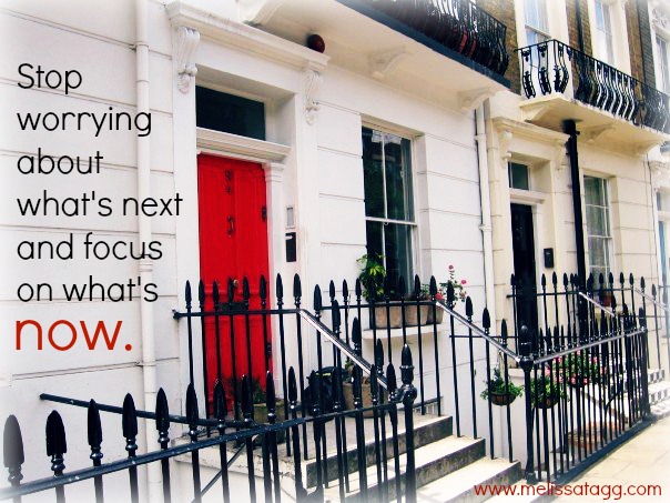 LOVE that picture and your thoughts here. You know me…like you, I tend to think waaaaay into the future. But God wants to teach me something right now, and if I’m always thinking about the future only, then I totally miss it. My focus should be on Him anyway, and not on what’s to come. Thanks for the reminder, friend!!