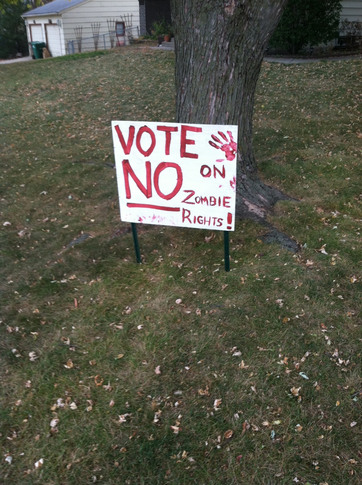 In case you can’t read it, it says “Vote NO on Zombie Rights.”