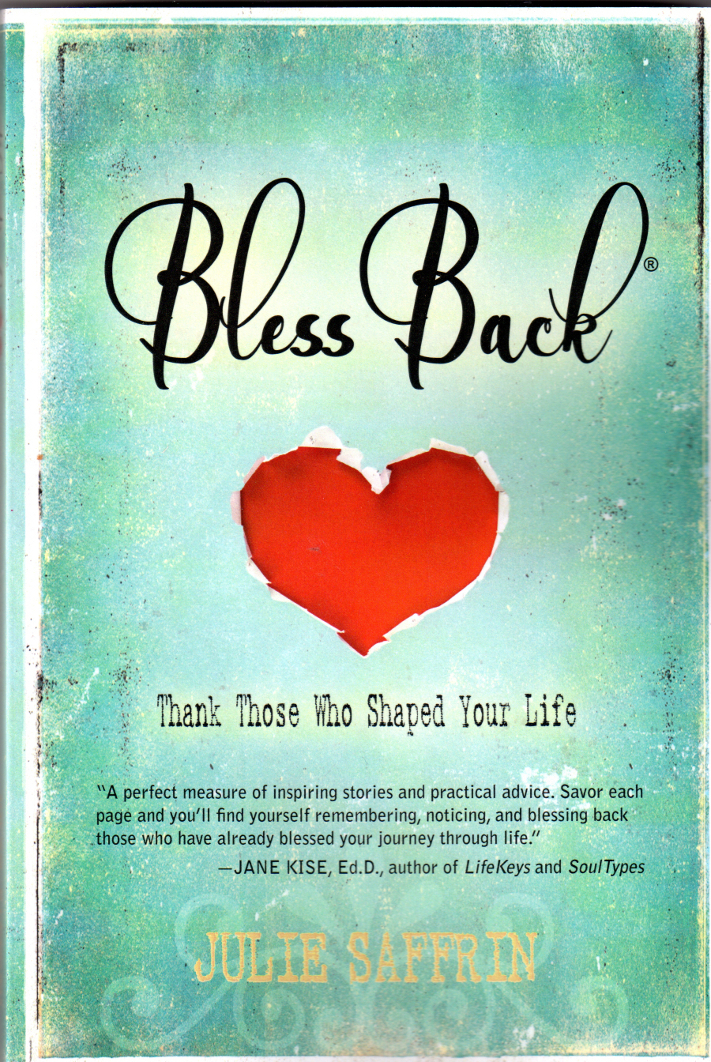 Awhile back, I had the fun of winning a book on my friend Michelle Lim’s blog when she featured author Julie Saffrin. Julie and I connected after that. Often I feature fiction authors here on Wednesdays, but in Julie’s case, I had to make an exception–because I love the challenge and inspiration in her idea of “BlessBacks.”