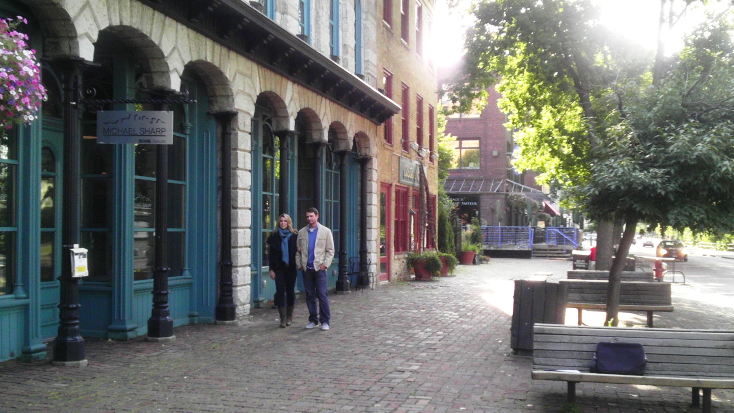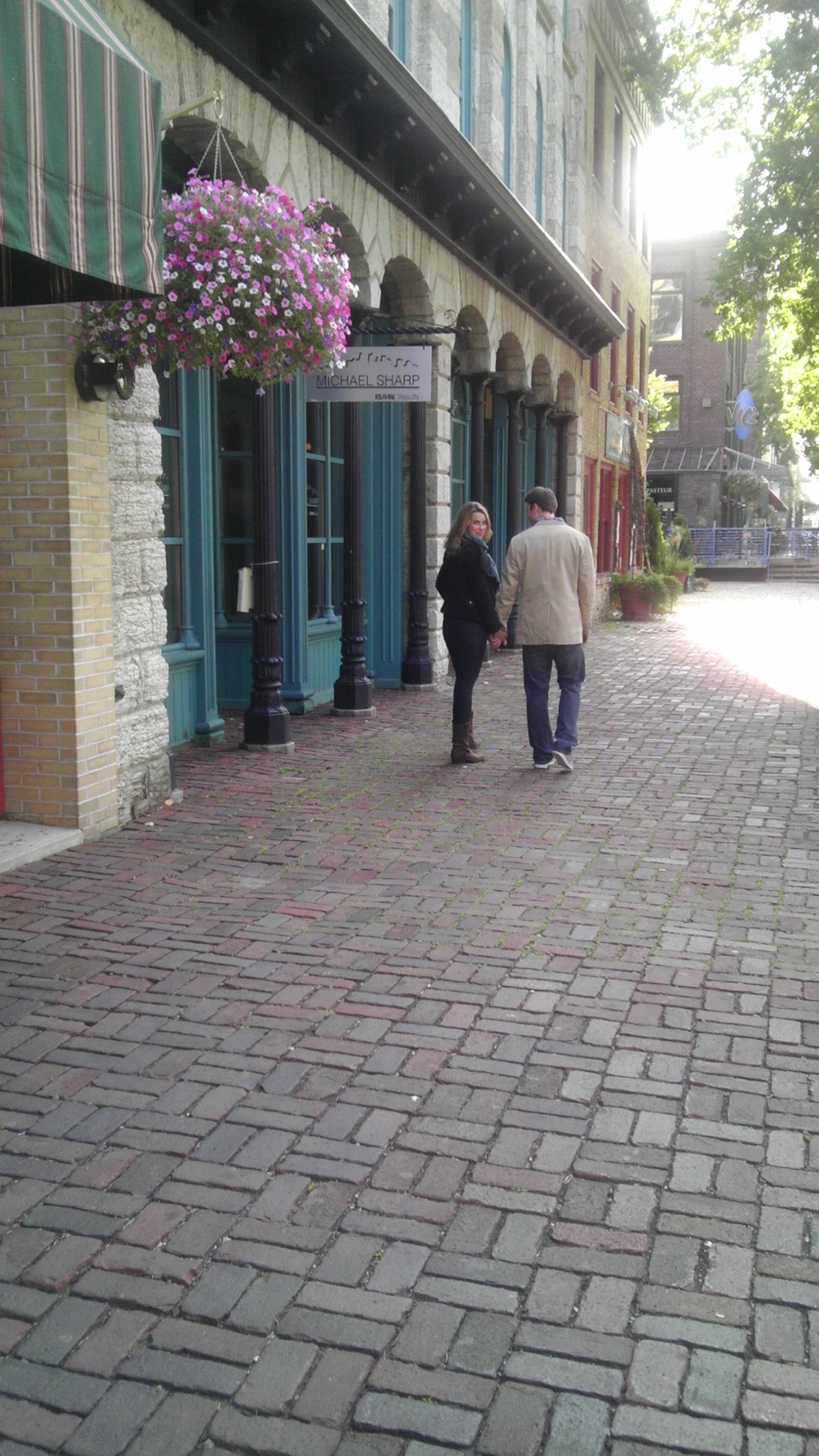 Here to Stay takes place in the made up tourist town of Whisper Shore, Michigan. I came up with the town name early on as I was writing a line about the wind whispering over the shore…and bam, I had a town name. The town is cute and quirky and colorful. So the folks at Bethany House found a cool spot with old shops and a brick street along the St. Antony Main riverfront area in Minneapolis.